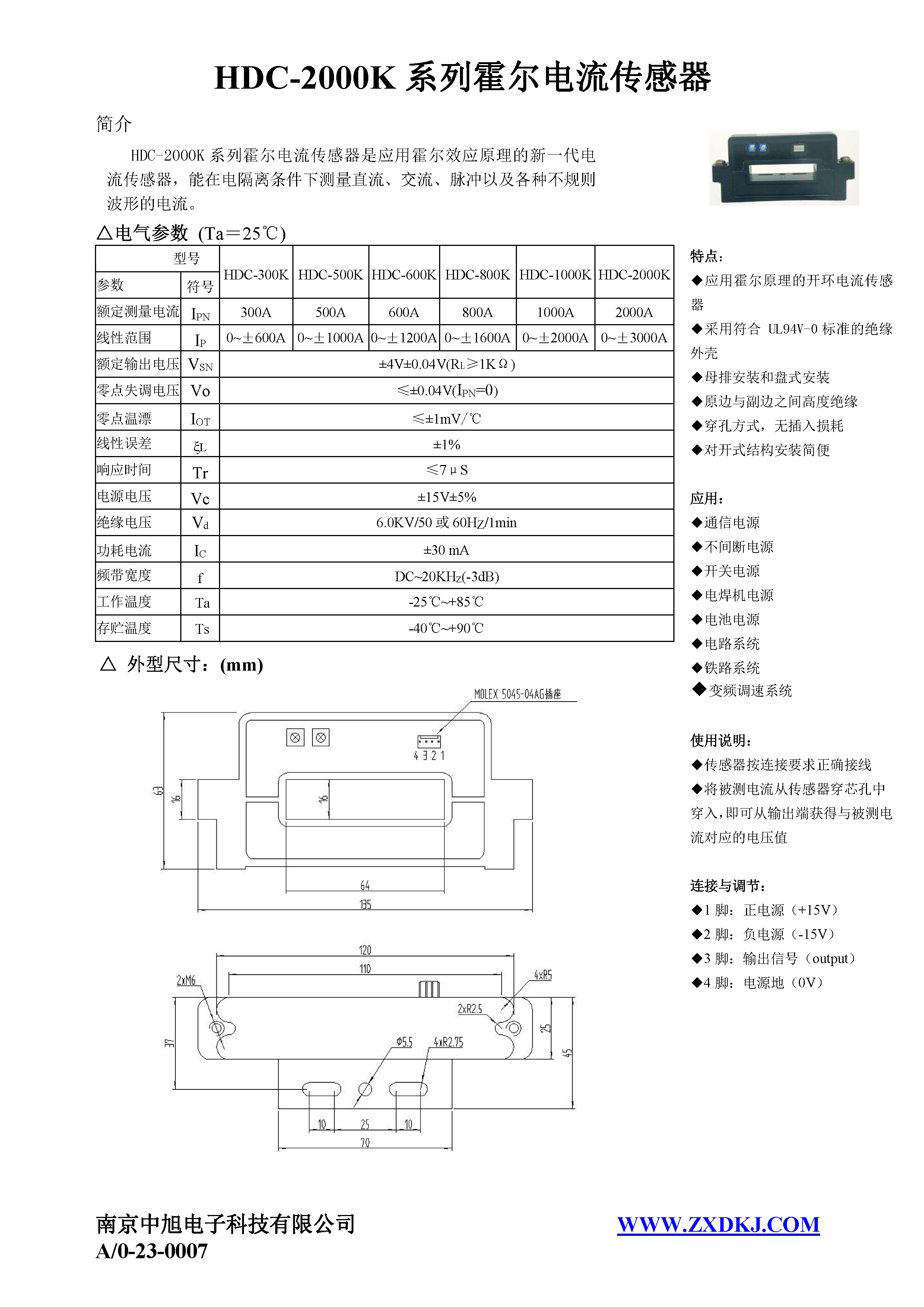 HDC-2000K系列霍爾電流傳感器是應用霍爾效應原理的新一代電流傳感器,能在電隔離條件下測量直流、交流、脈沖以及各種不規(guī)則波形的電流。
